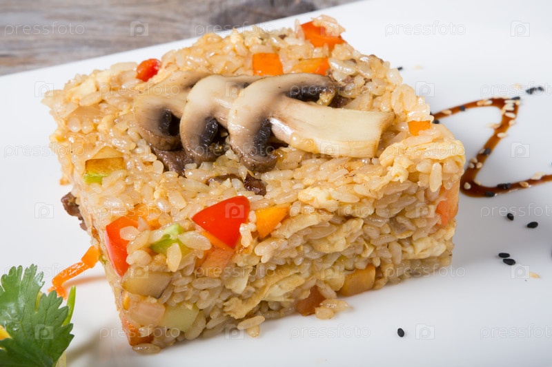 Жареный рис с грибами