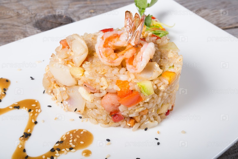 Жареный рис с креветками
