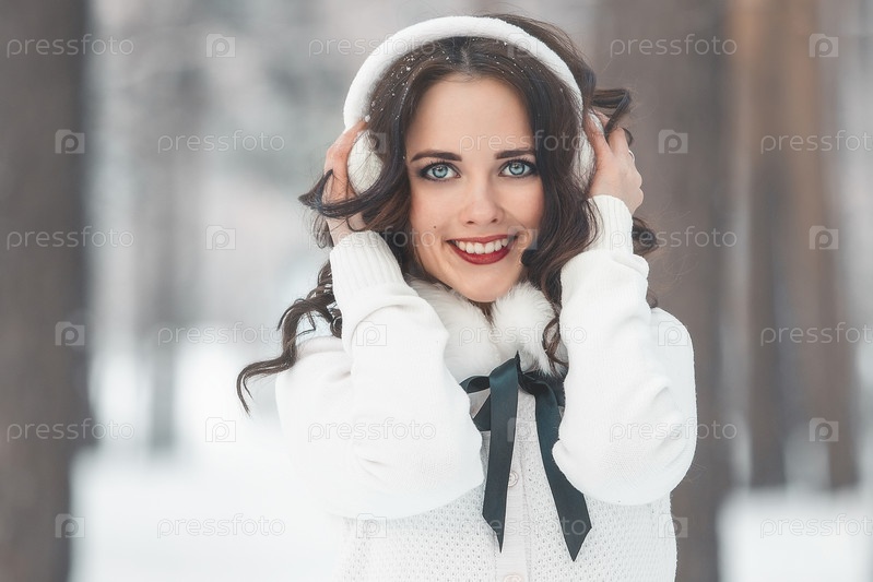 Красивая молодая девушка в зимнем лесу