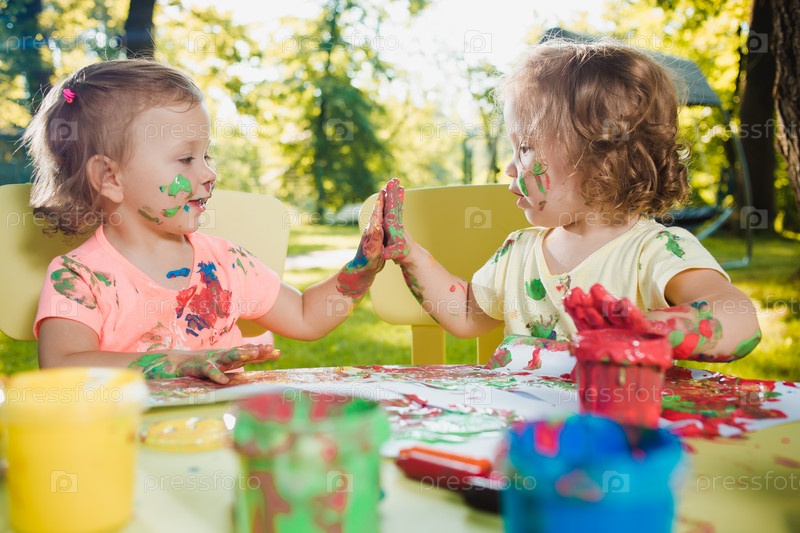 Две маленькие девочки с красками