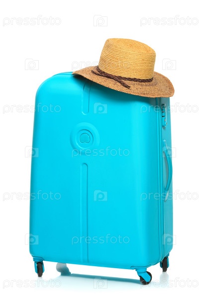 Современный большой чемодан на белом фоне
