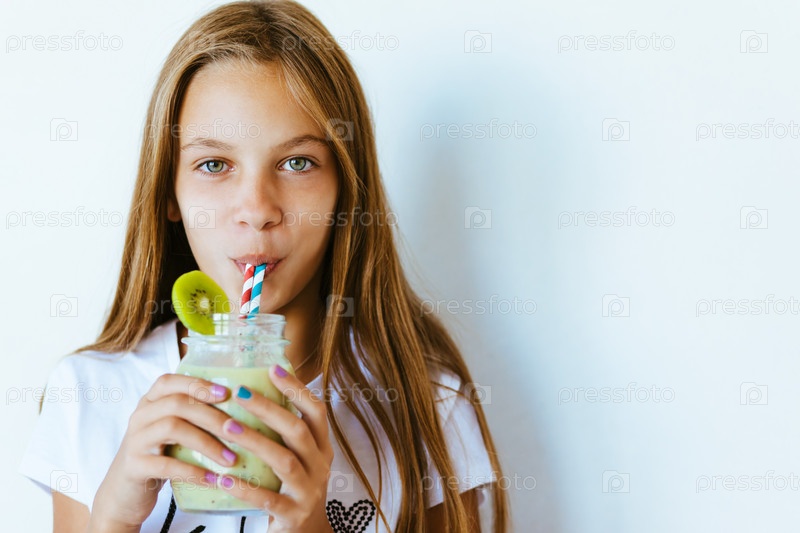 Девочка с вкусным коктейлем из киви