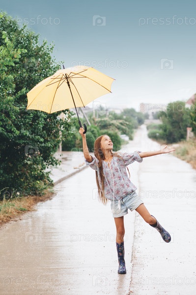 Девочка гуляет под дождем