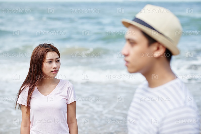 Мечтательная девушка с парнем на пляже