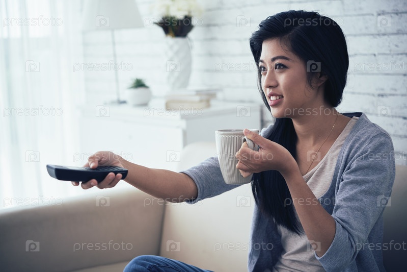Девушка смотрит телевизор