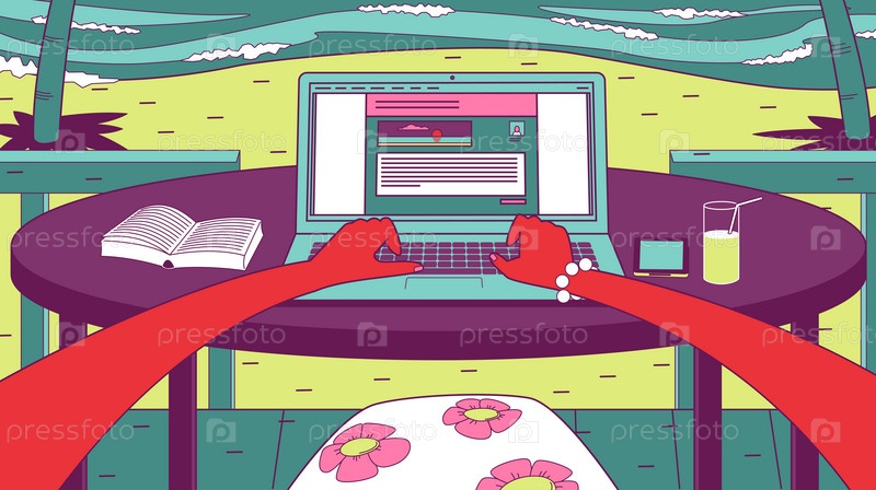 Девушка за ноутбуком