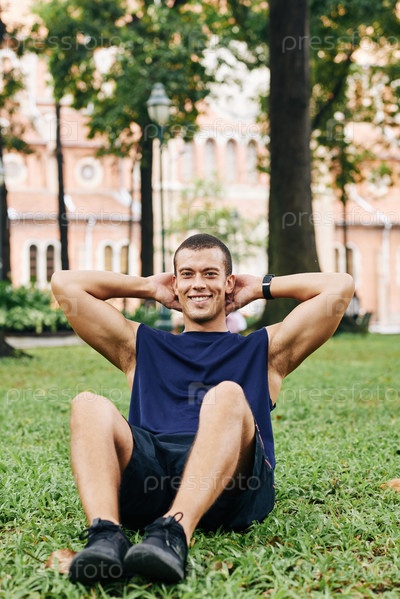 Мужчина качает пресс