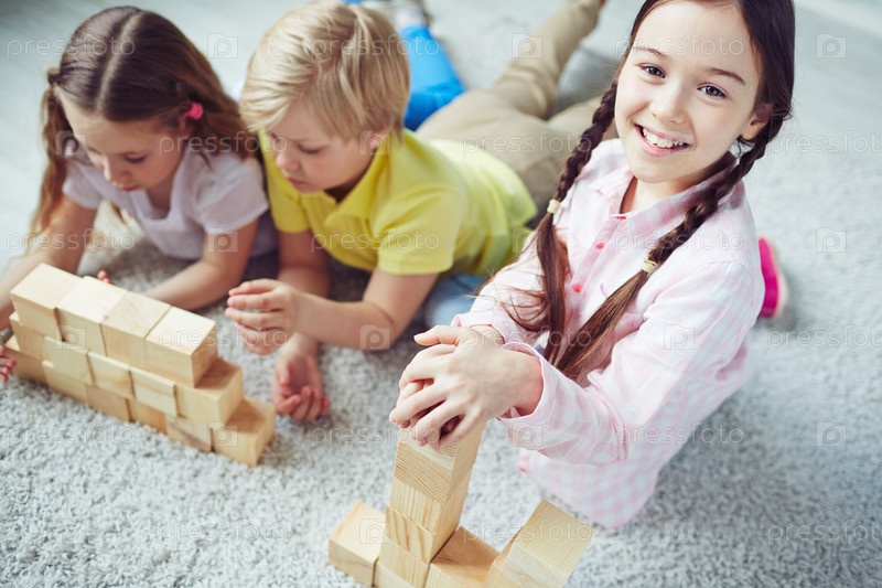 Дети за игрой в кубики