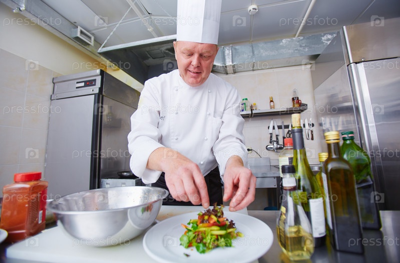 Шеф-повар готовит салат
