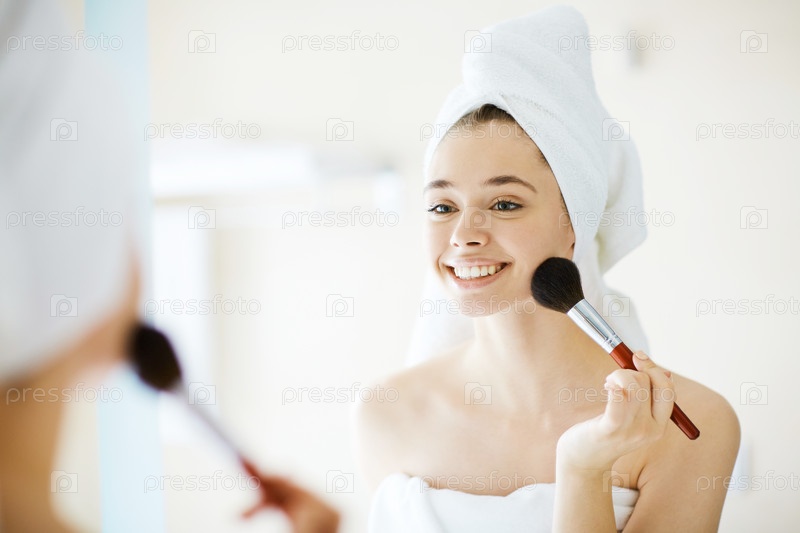Девушка наносит макияж