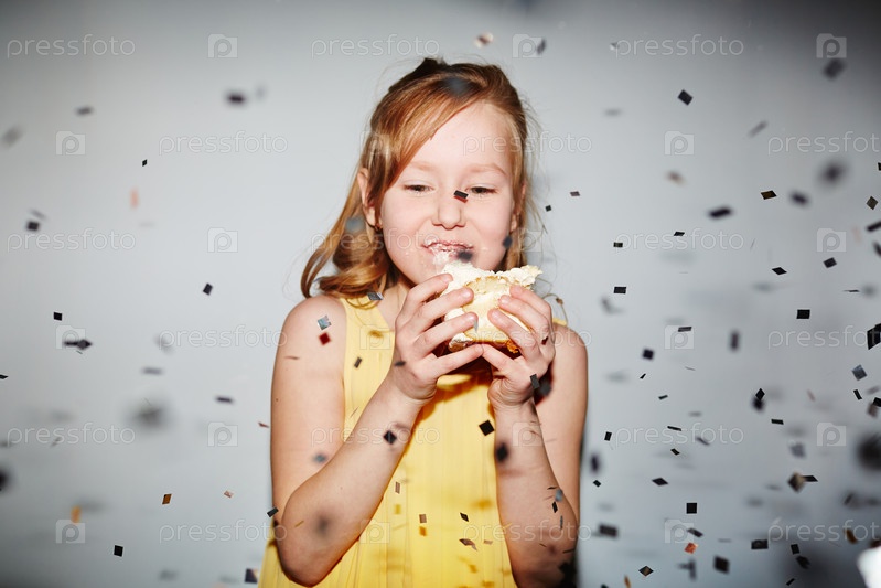 Девочка с тортом на празднике