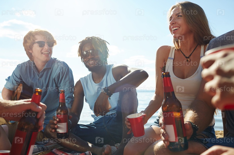 Компания друзей на пляже