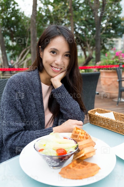 Девушка завтракает в ресторане