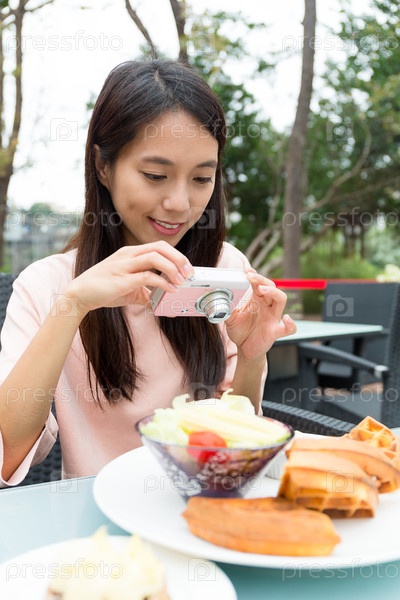 Девушка фотографирует еду