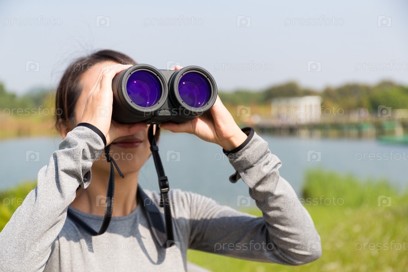 Девушка смотрит в бинокль