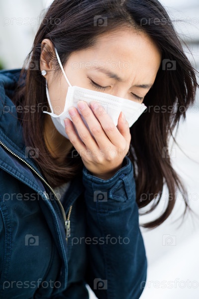 Заболевшая девушка в маске