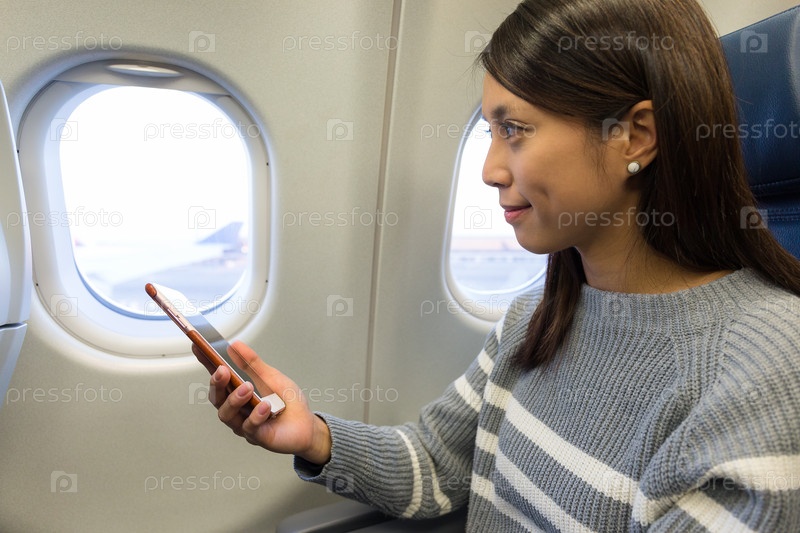 Девушка со смартфоном в самолете
