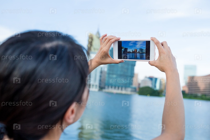 Девушка фотографирует город