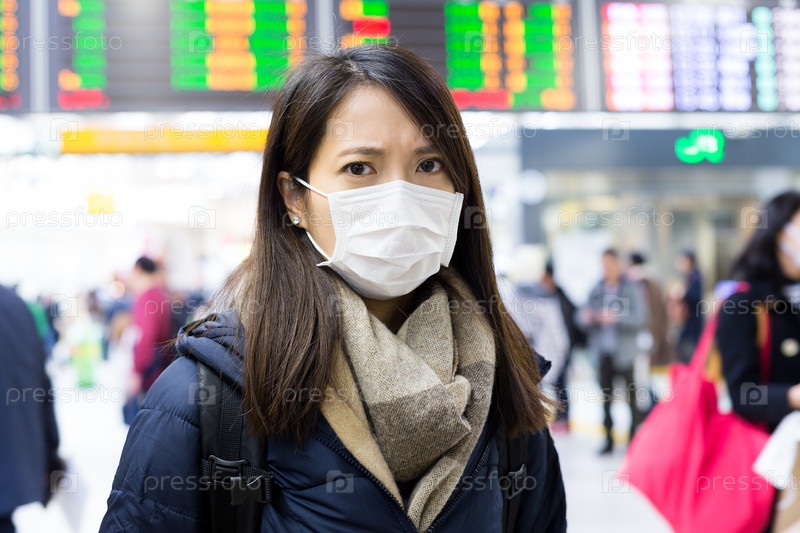 Заболевшая девушка в маске