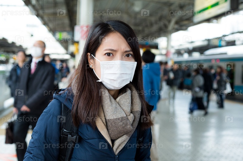 Заболевшая девушка в маске
