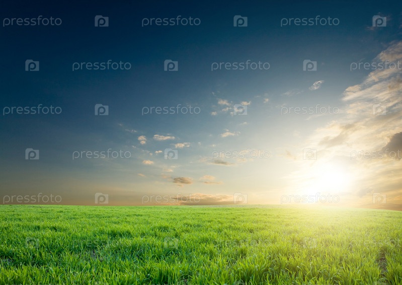 Зеленый луг на фоне голубого неба