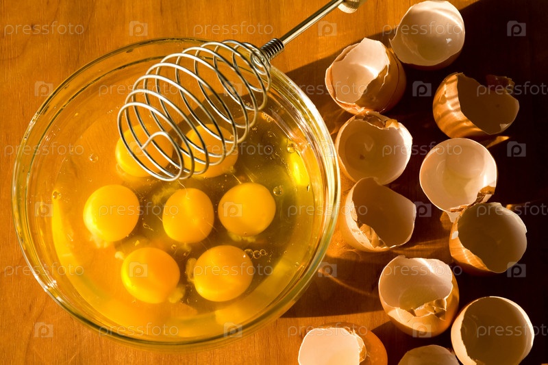Миска с яйцами во время подготовки омлета