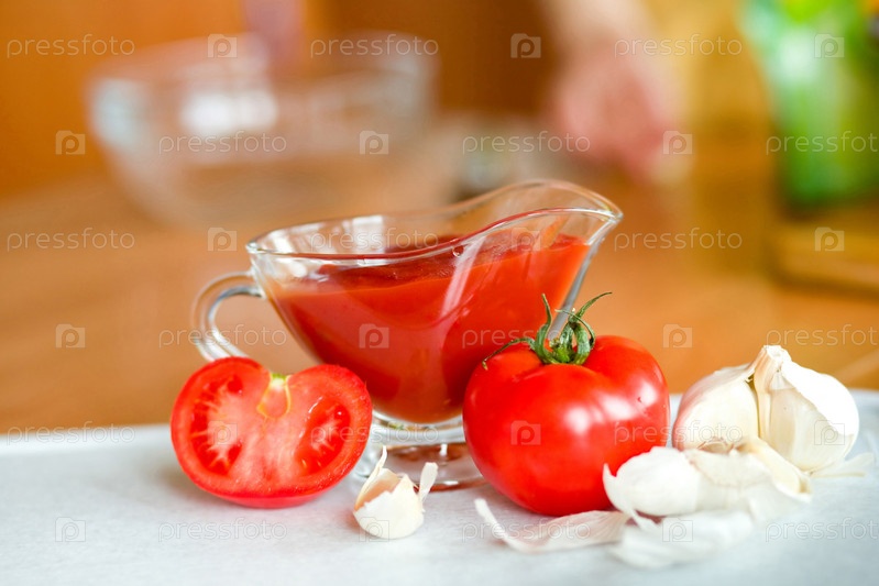 Аппетитные томаты и чеснок для приготовления острого соуса