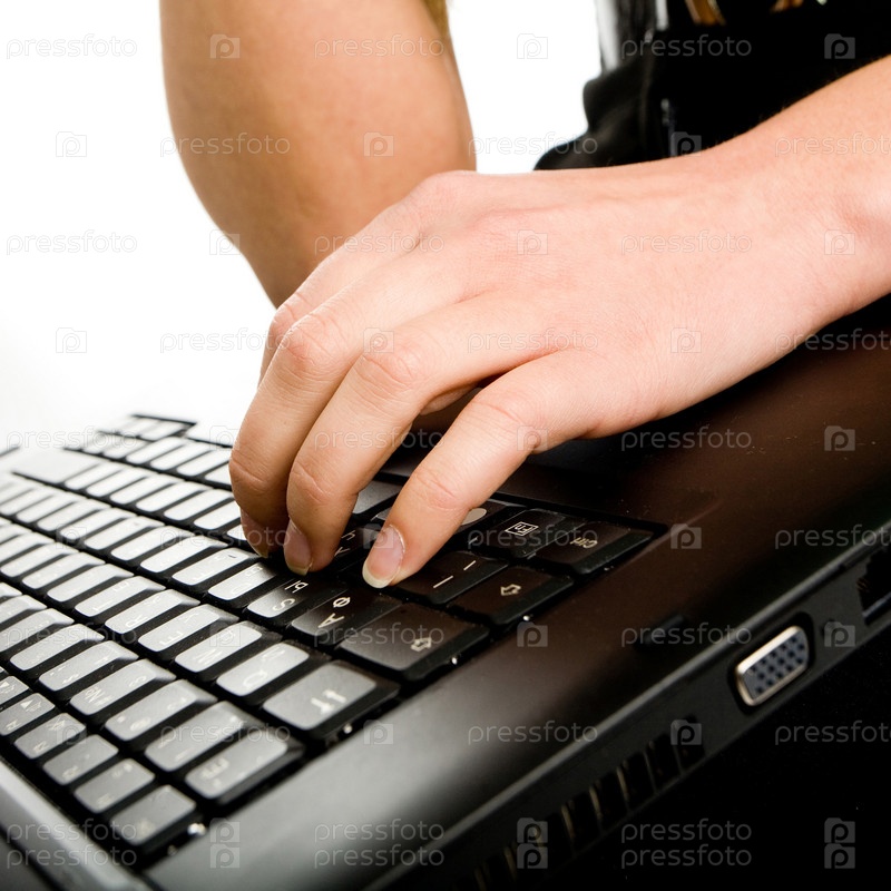Женская рука на клавиатуре крупным планом