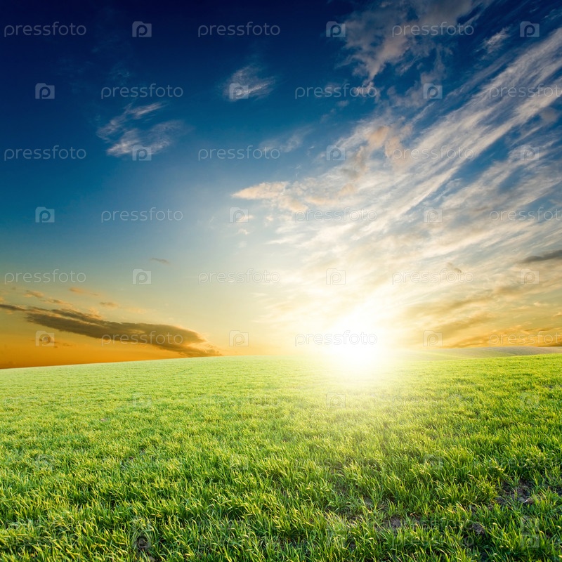 Зеленый луг на фоне голубого неба