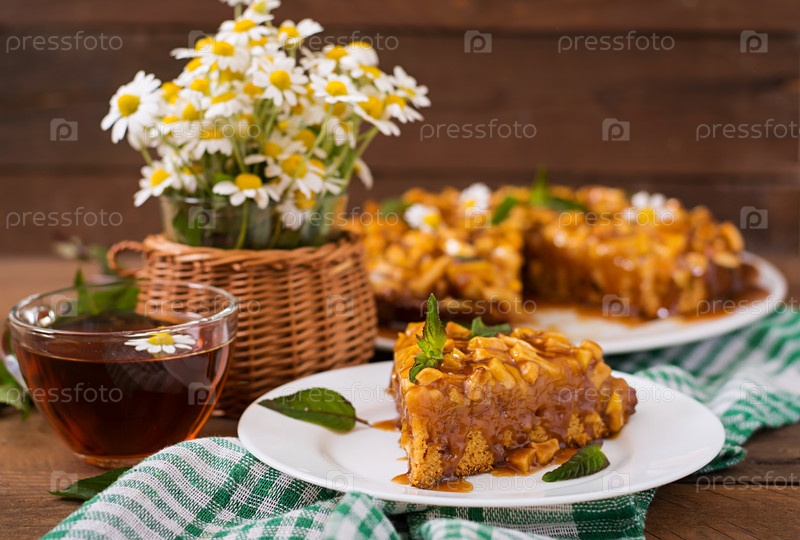 Яблочный пирог с карамельным соусом