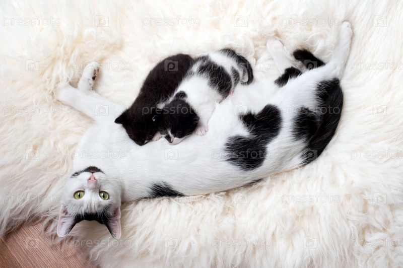 Кошачье семейство на белом меху