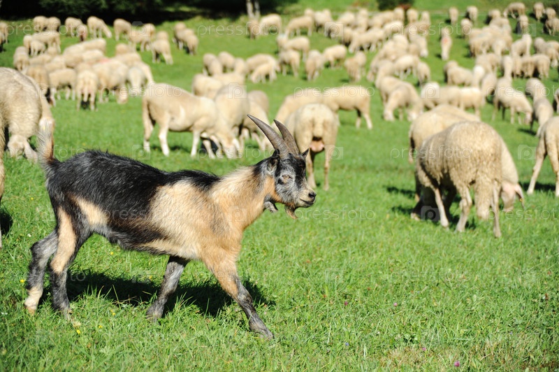 Козы и овцы на пастбище