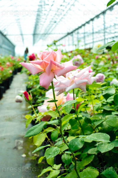 Свежие розы в оранжерее