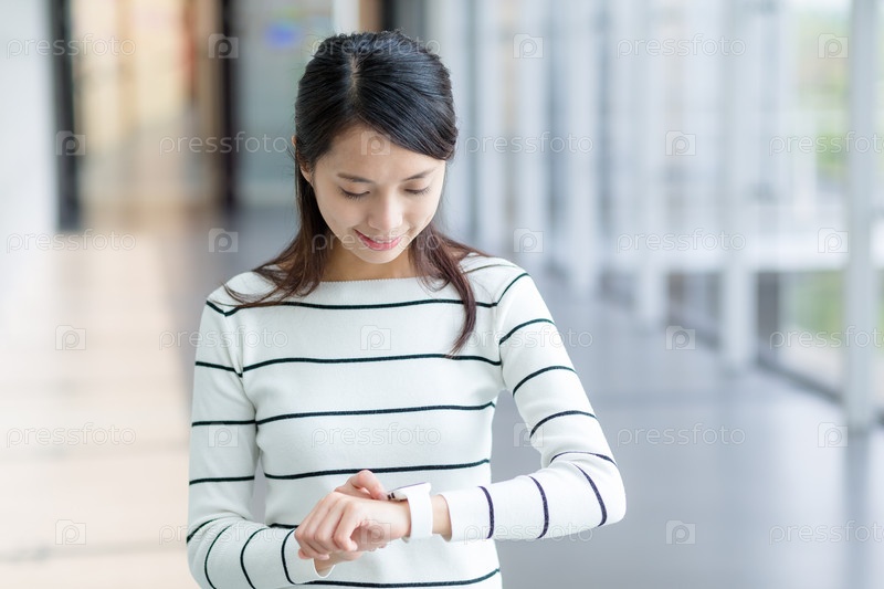 Девушка смотрит на часы