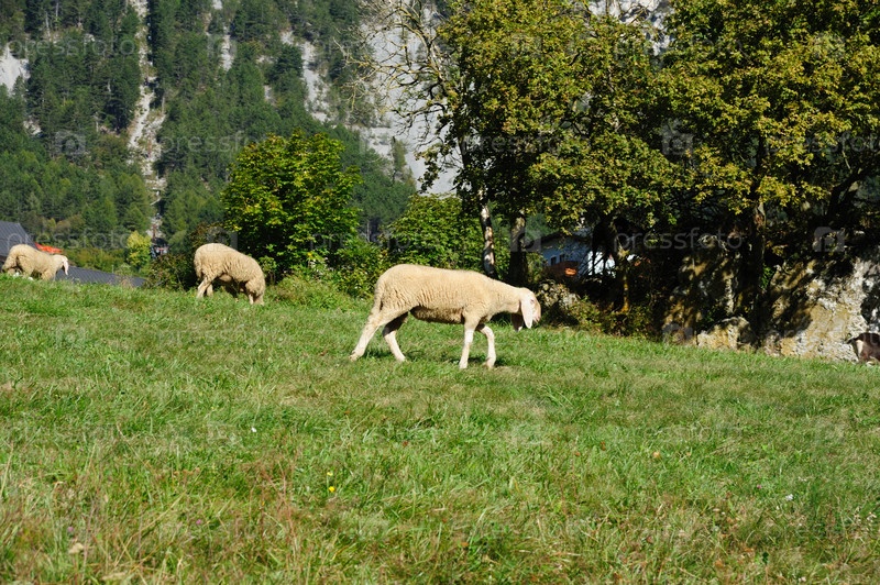 Овцы на зеленой траве