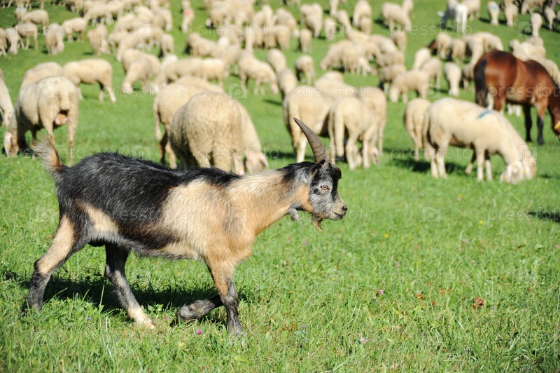 Коза и овцы на пастбище