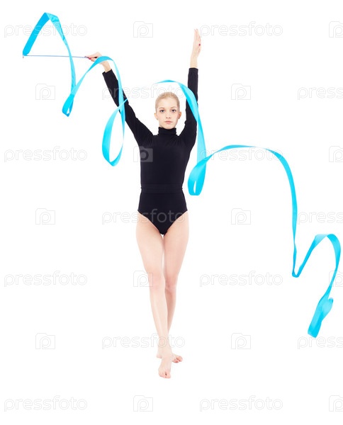 Портрет красивой гимнастки с голубой лентой