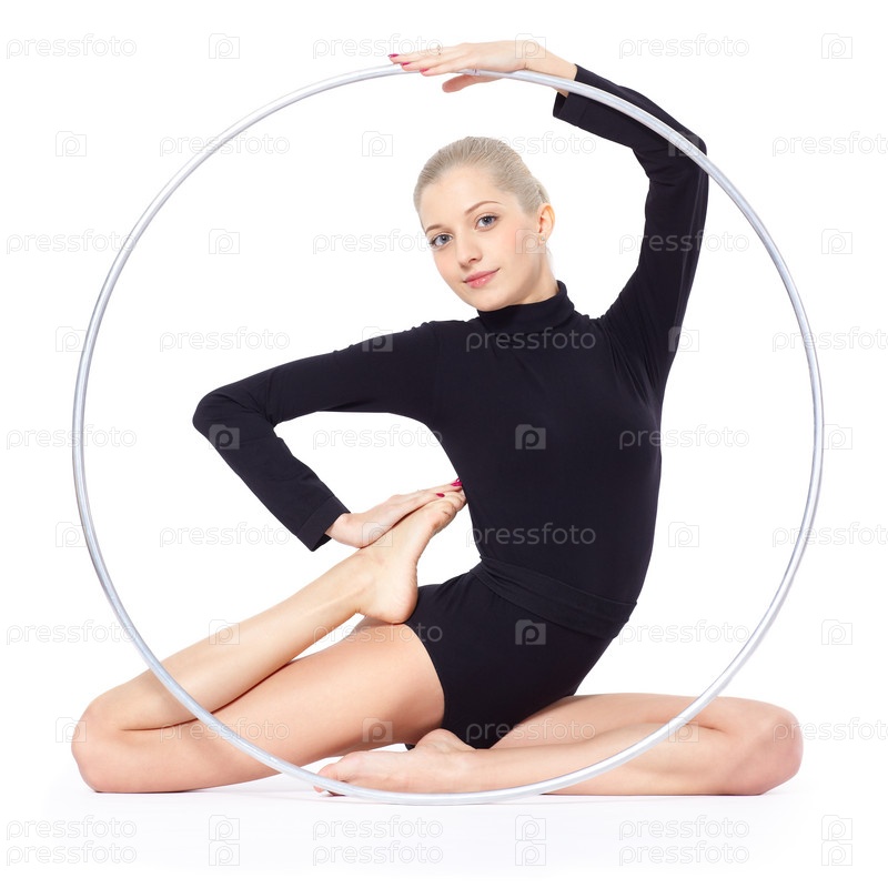 Красивая гимнастка на тренировке с обручем