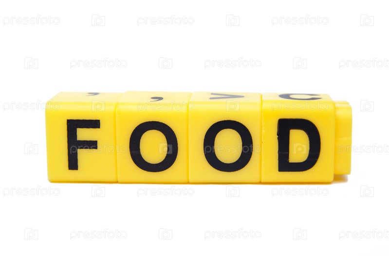 Слово "еда" сложено из желтых кубиков
