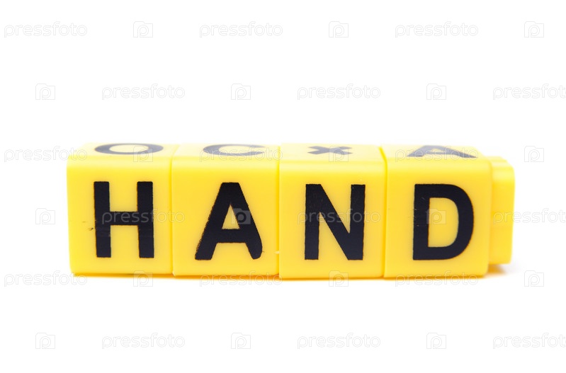 Слово "рука" выложено из желтых кубиков