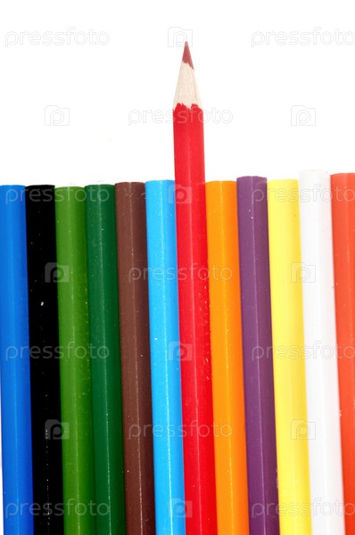 Цветные карандаши на белом фоне. Концепция лидерства