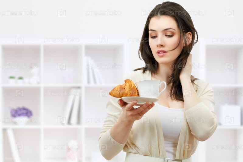 Девушка смотрит на свой завтрак