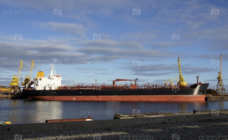 Большой танкер в порту