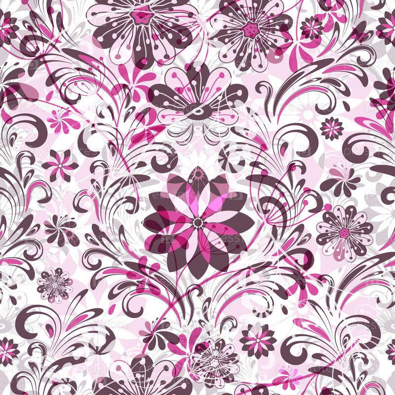 Розово-коричневый бесшовный фон с прозрачными цветами