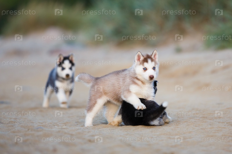 Щенки на пляже