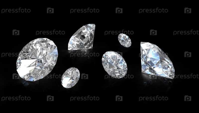Бриллианты европейской огранки, изолированы на черном фоне