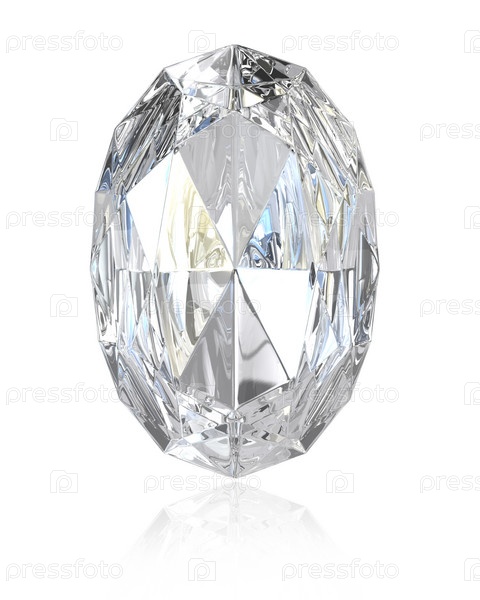 Сверкающий алмаз овальной формы на белом фоне