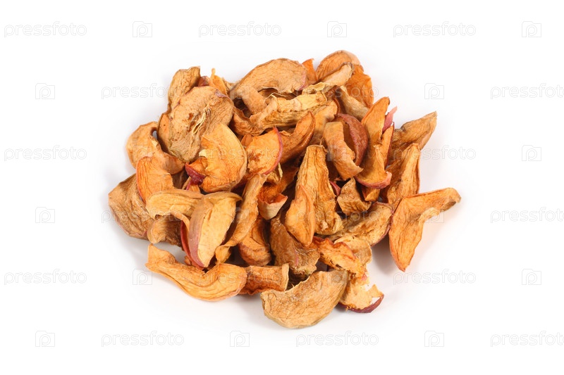 Горсть сушеных яблок на белом фоне