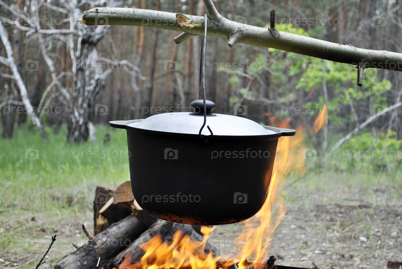 Приготовление пищи в котле на костре