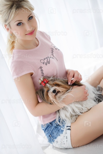 Красивая блондинка с маленькой собачкой